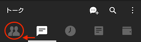 画面上部の友達のタブをタップする。
