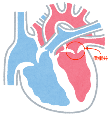 心臓は、右心房、右心室、左心房、左心室と4つの部屋に分かれており、血液は一方通行で流れています。そのため各部屋には血液の逆流を防ぐ【弁】がついており、その一つが【僧帽弁】です。